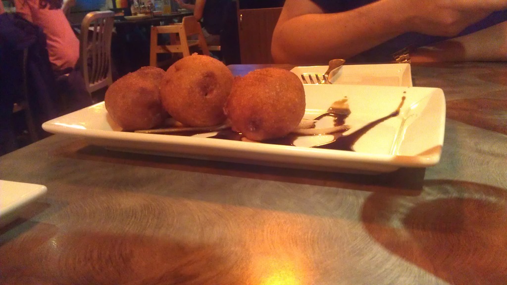 This was a really tasty appetizer, it was called a “Dork Ball”. It is a duck/pork battered in corn bread. Served in a balsamic seasoning. I really enjoyed it, and the churken burger. ![]()