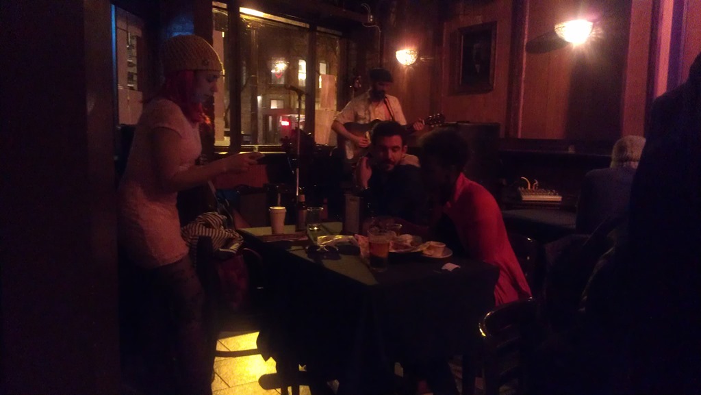 So as we sit down inside there is a small band just playing music in the background. The girl on the left was the bassist, and the other guy that is playing by himself was the lead.